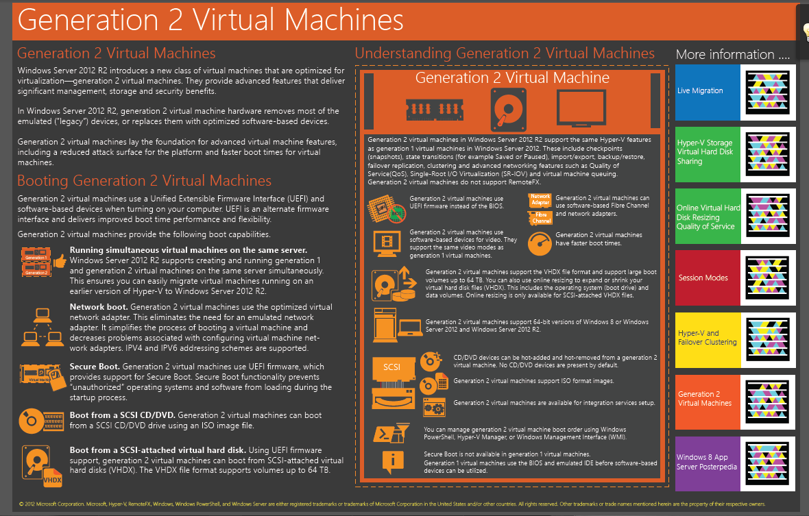 The following poster was just released by Microsoft to help shed some light on the features Gen 2 Virtual machines :