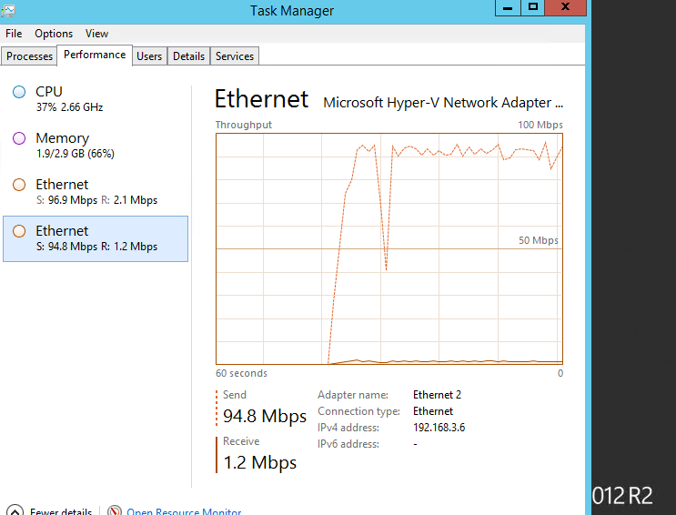 After starting the copy, I noticed that both NICs were utilized in the copy process, since I set the Global Load Balance policy to Round Robin. The following screen shot will show this: