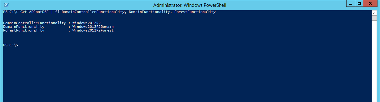 The Domain diagnostics test showed no errors and the Get-ADRootDSE indicates this is a Windows2012R2 domain controller running in a Windows2012R2 domain and forest functional level.