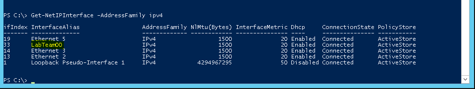 I started by enumerating the network adapters on the server using the Get-NetIPInterface cmdlet and displaying the ipv4 addresses: