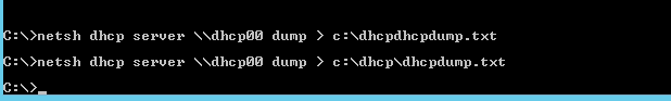 C:\>netsh dhcp server \\dhcp00 dump > c:\dhcp\dhcpdump.txt