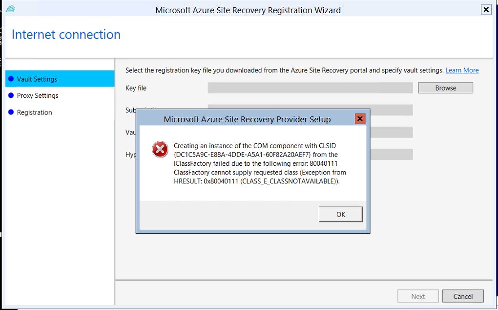 I encountered an error trying to register the Hyper-V host with my Azure vault.