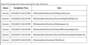 The Copy-AzureStorageFilesFunctionApp Function copies files from one storage account to another in the same subscription. At this time while developing this function 9/13/2017,