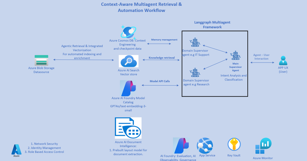 To address this challenge, we proposed and designed a cloud-native, AI-powered multi-agent system hosted on Microsoft Azure. Built on the LangGraph orchestration framework and Azure AI Foundry. This solution integrates advanced ai agent hierarchies, allowing for contextual, domain-specific knowledge retrieval and automated IT support. It improves speed, accuracy, and adaptability, delivering measurable gains in support resolution time, employee satisfaction, and knowledge accessibility.