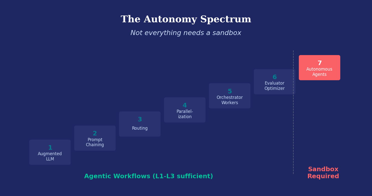 An important caveat: sandboxing is not universally necessary. The need scales directly with the agent’s degree of autonomy.